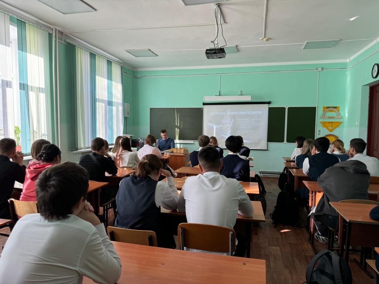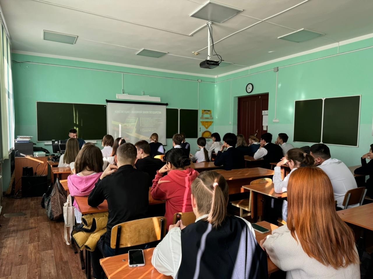 Представитель ЛДПР рассказал школьникам об истории создания главного документа страны - Конституции Российской Федерации. А также Александр Русляков рассказал ребятам о роли Владимира Жириновского в составлении и принятии документа в 1993 году. В ходе встречи он подчеркнул, что Конституция — это основа правовой системы, обеспечивающая стабильность и порядок в жизни общества.
