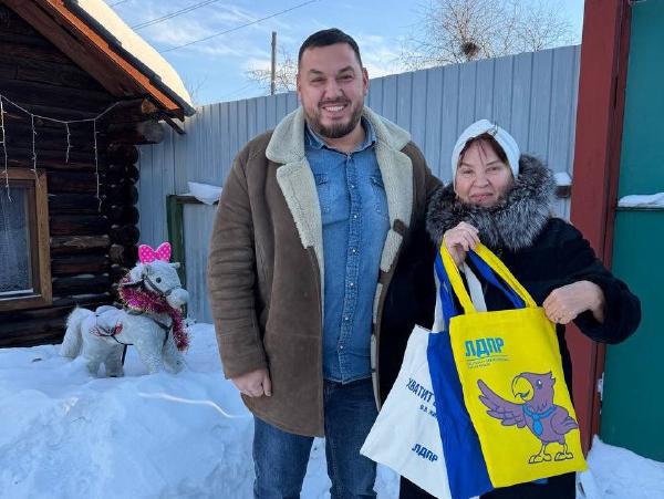 Депутат Думы города Братска от ЛДПР Максим Игнатов лично поздравил с новым годом и рождественскими праздниками Нину Качаеву, одну из самых активных и уважаемых жительниц избирательного округа.