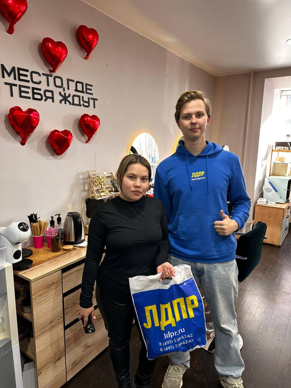 Заместитель руководителя молодёжной организации ЛДПР Кирилл Кузнецов посетил представительниц швейного дела и индустрии женской красоты. Он вручил им персонализированные подарки и пожелал уверенного развития, постоянного вдохновения, лояльных клиентов и новых креативных идей, способствующих процветанию и приносящих радость.