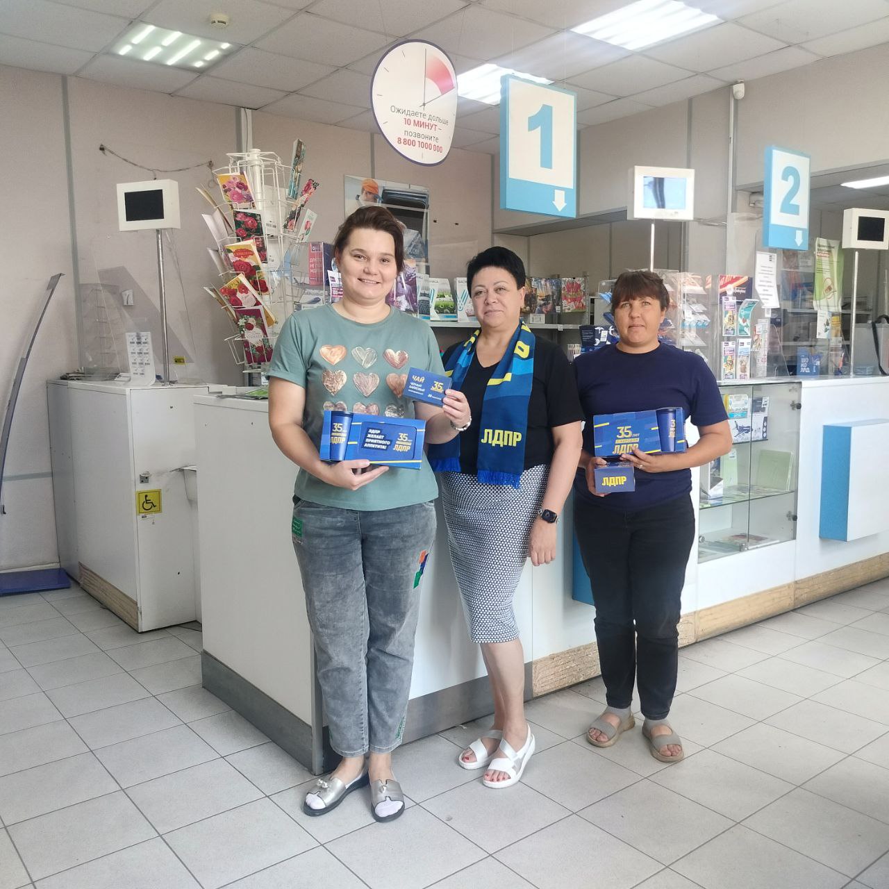 Координатор Забайкальского регионального отделения ЛДПР Светлана Илюхина поздравила сотрудников почты России с профессиональным праздником и вручила им брендированные подарки.