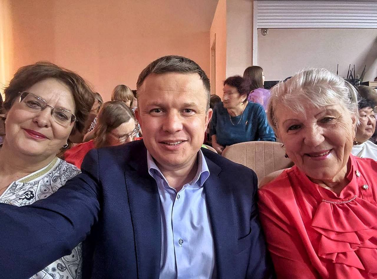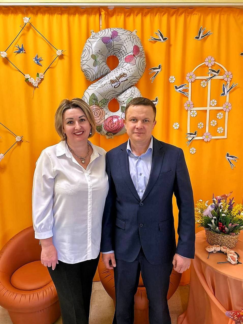 Активист ЛДПР Андрей Поминенко поздравил директора Грановской школы Надежду Сидорину, поблагодарив за труд, который она вкладывает в развитие школы и воспитание детей.